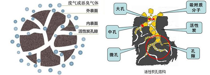 根據吸附過程中,活性炭分子和污染物分子之間作用力的不同,可將吸附分為兩大類:物理吸附和化學吸附(又稱活性吸附)。廢氣中的有機成分被吸附到活性炭纖維的微孔中,從而在炭纖維微孔內形成一層平衡的吸附濃度,由于分子之間擁有相互吸引的作用力,當一個分子被活性炭內孔捕捉后,會導致更多的分子不斷被吸引,直到添滿活性炭纖維孔隙為止。須指出的是,不是所有的微孔都有吸附作用,這些被吸附的有機物分子的直徑須是要小于毛細孔的孔徑,即只有當孔隙結構略大于有機物分子的直徑,能夠讓有機物分子完全進入的情況下才能保證被吸附到微孔中,過大或過小都不行,這需要通過不斷地改變原材料和活化條件來創造具有不同的孔徑結構的吸附劑,從而適用于各種有機物的吸附。